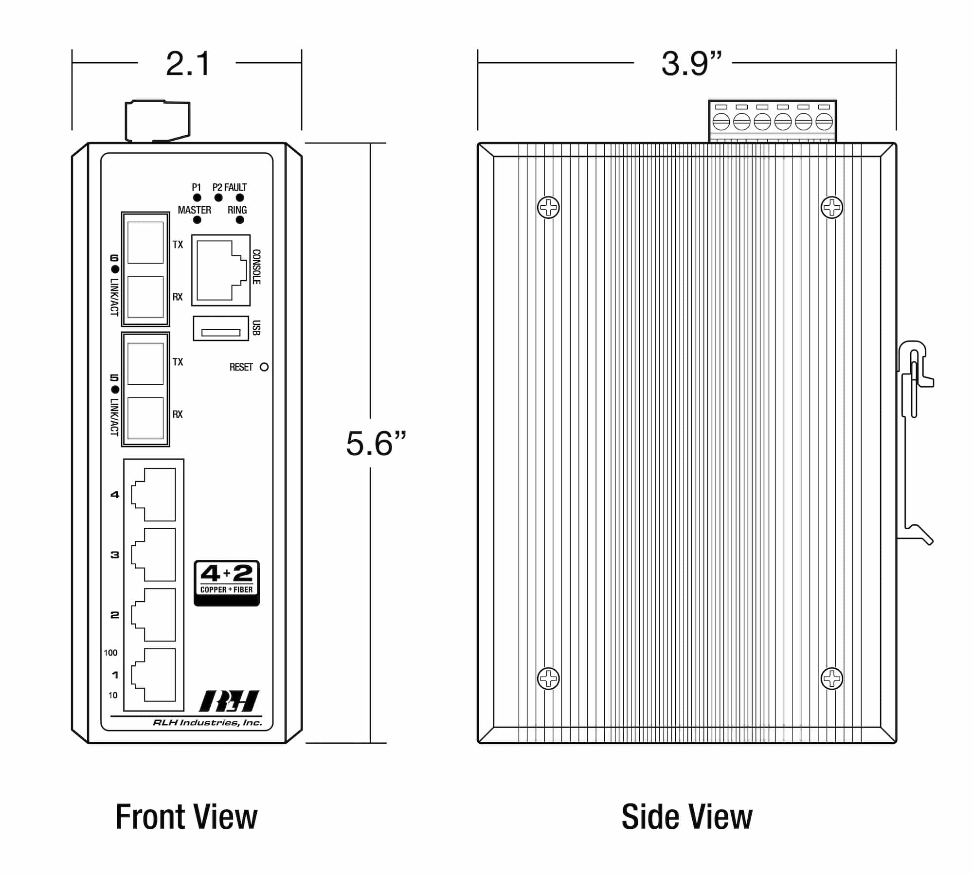 RLH industrial Ethernet switches are engineered to provide reliable network performance in harsh environments. The 4+2 Managed Fiber Switch is an industrial switch with 4 10/100BASE-T ports and 2 fiber ports.The 100BASE-FX fiber ports support single and dual fiber configurations, singlemode and multimode, ST and SC connectors. This fully manageable Light Layer 3 switch, combines the functionality of a Layer 2 switch with basic Layer 3 routing capabilities.