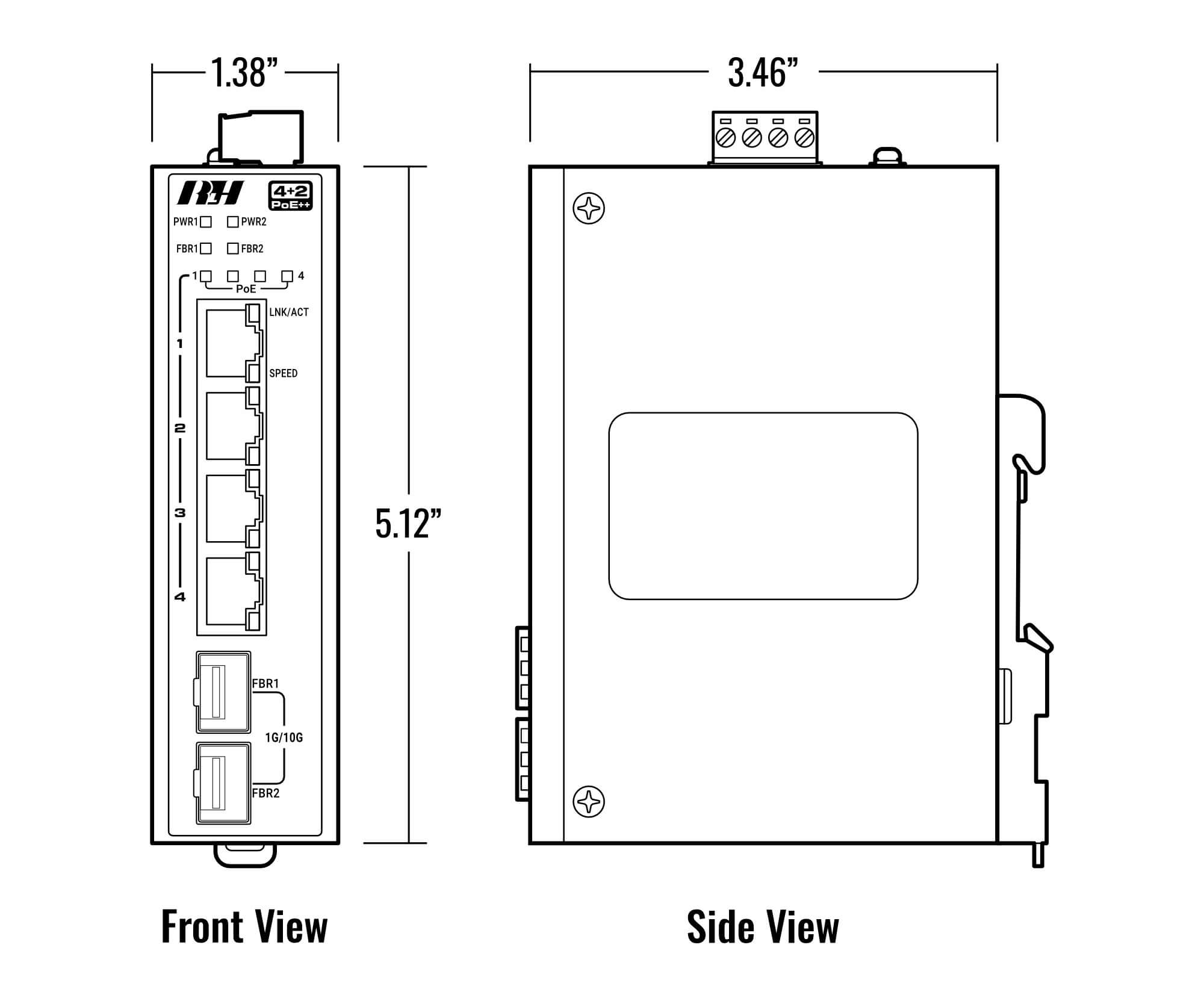 4+2 Unmanaged PoE++ (90 watts) 10/100/1G/2.5G Industrial Ethernet Switch, SFP+(1G/10G) ports 52-57VDC | ETH-42GXP-BT-1 | $545.00 |